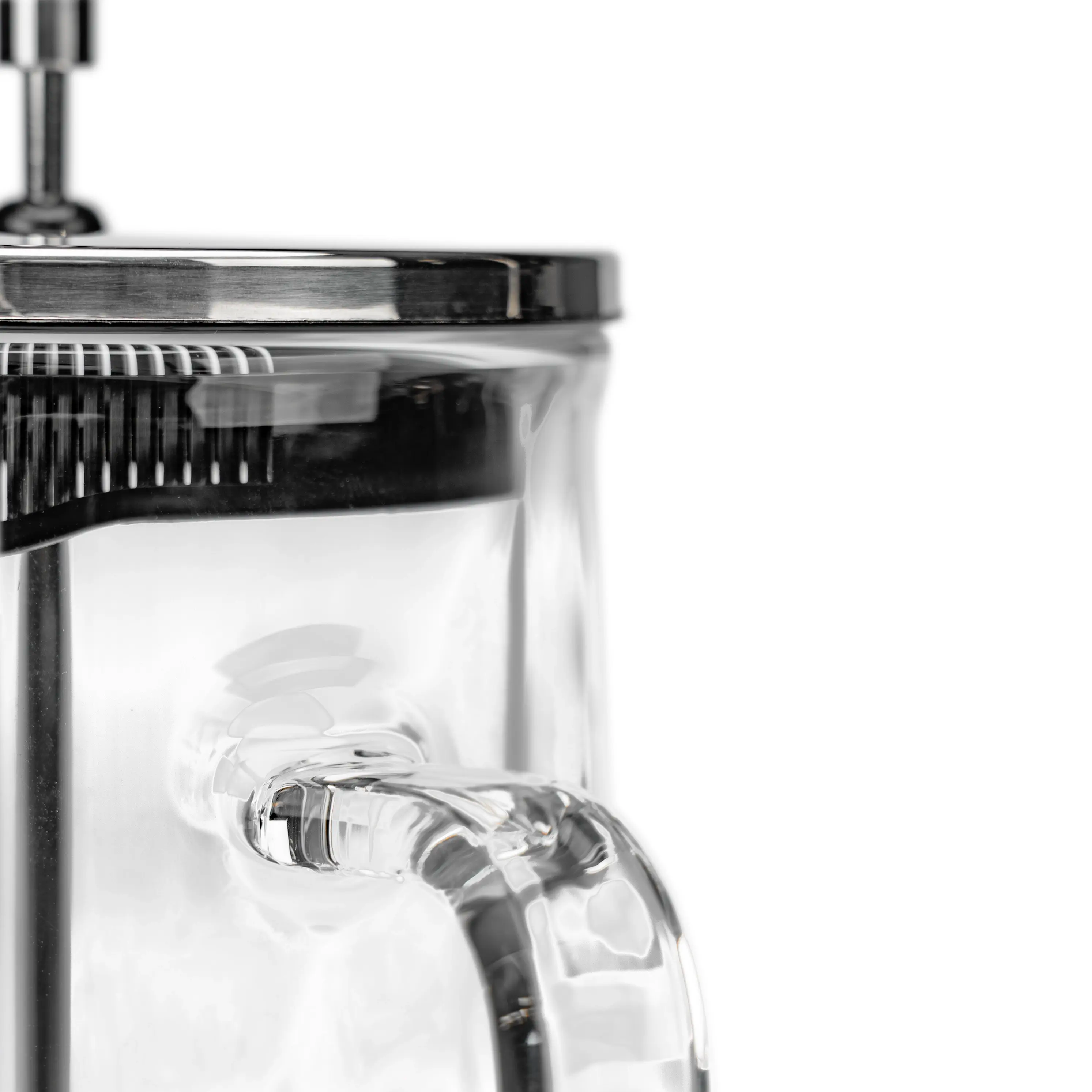 Esta Prensa Francesa, combina la extracción tradicional de cuerpo completo con la innovación moderna. Su cuerpo fabricado en vidrio de borosilicato de doble pared crea una cámara de aire que mantiene la temperatura de extracción ideal y conserva tu café caliente mucho más tiempo que las prensas convencionales.