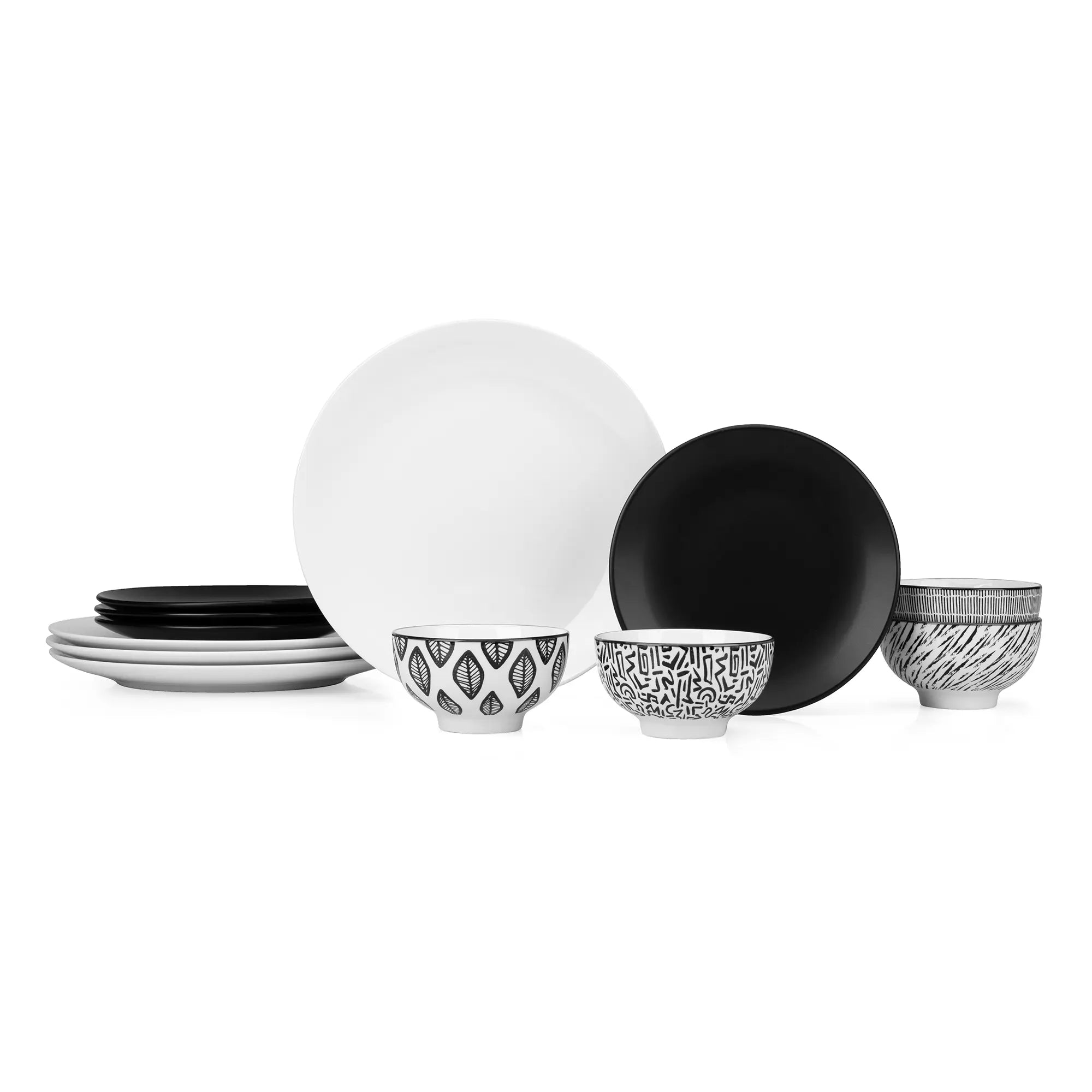 Transforma tus comidas diarias y tus cenas especiales en una verdadera experiencia visual. Esta exclusiva vajilla de 12 piezas redefine el estilo contemporáneo al combinar la sofisticación atemporal del blanco y negro con un toque de diseño atrevido. No es solo un lugar donde servir tu comida; es el lienzo perfecto para tus creaciones culinarias.
