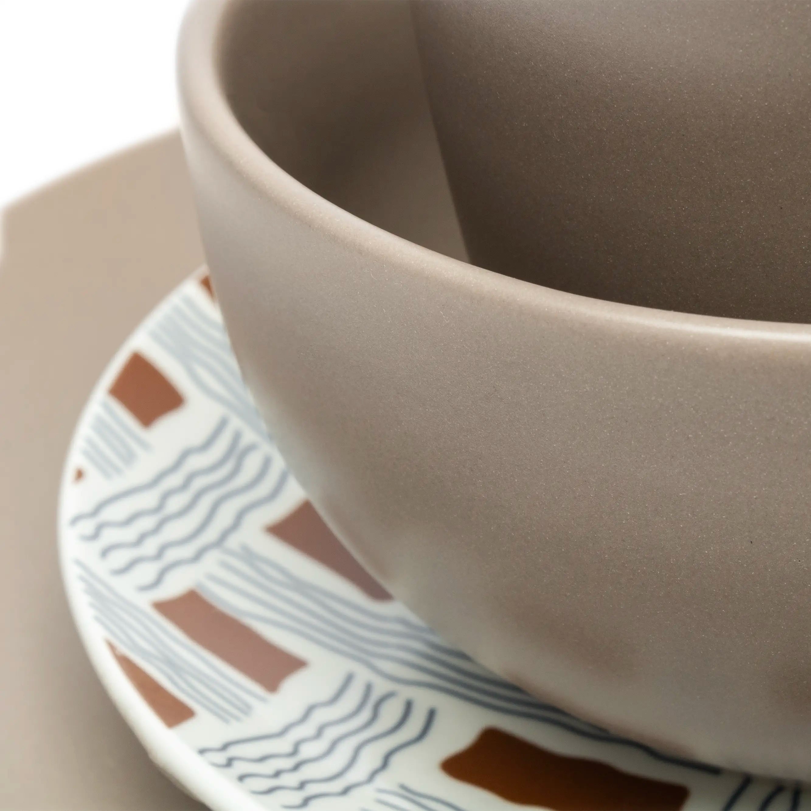 Equilibrio y contraste es lo que define a esta vajilla. Las piezas sólidas aportan estabilidad y una base neutral al diseño, mientras que las piezas con diseños agregan personalidad, dinamismo. Este contraste crea un equilibrio armonioso y realza cada una de sus piezas.