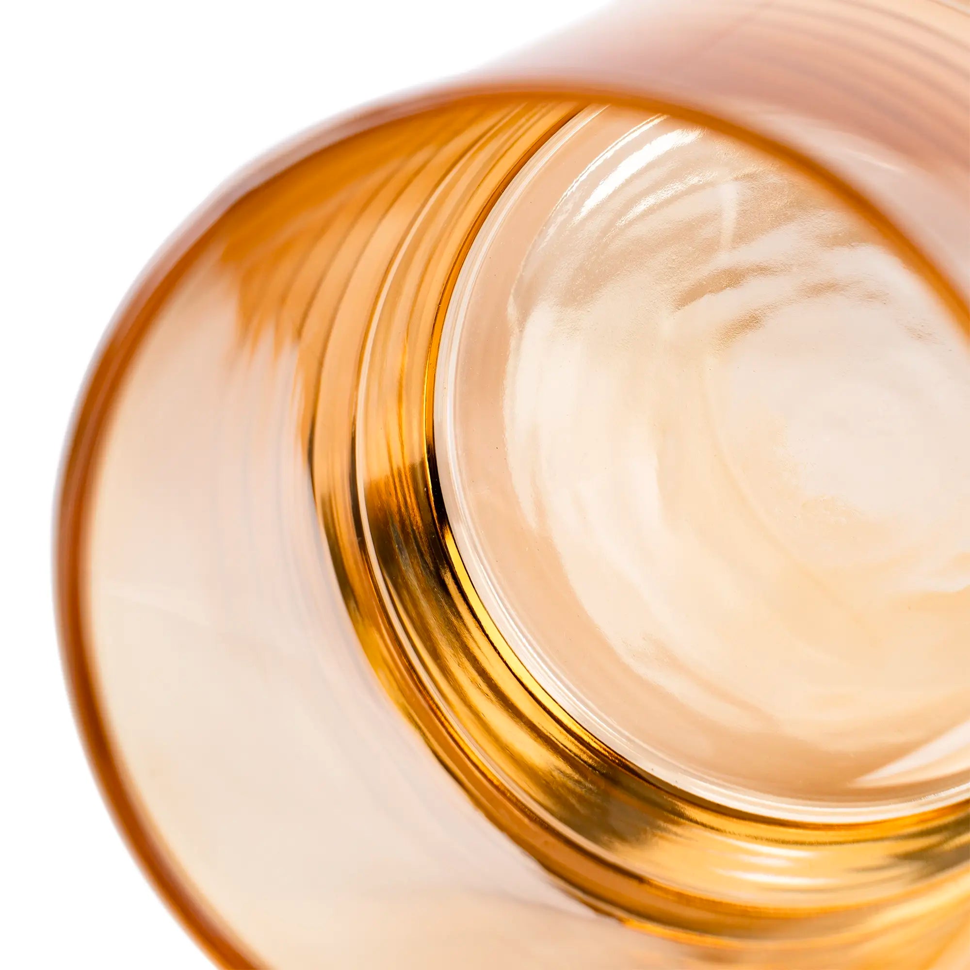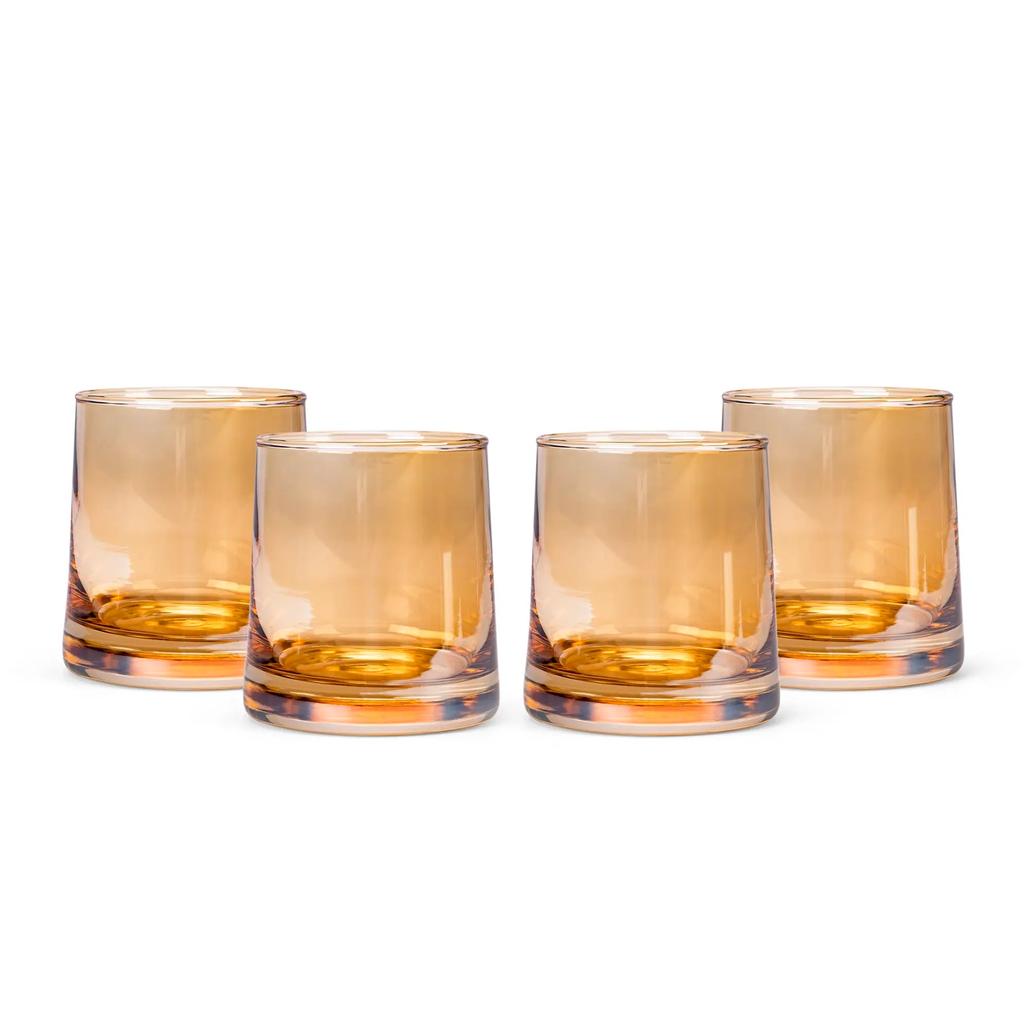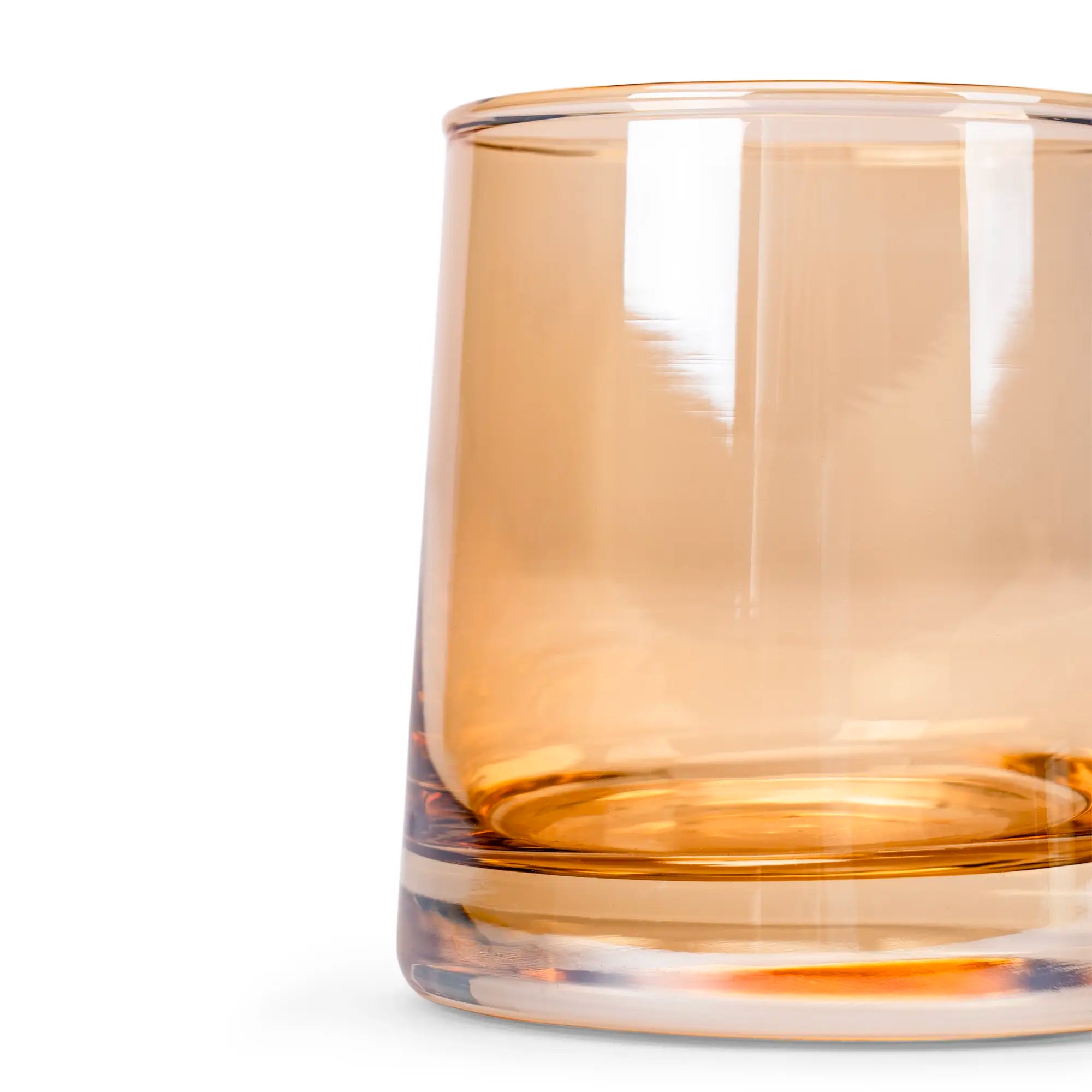 Este elegante set de 4 vasos en tono ámbar combina sofisticación y calidez en cada detalle. Su diseño moderno y minimalista, junto con el sutil brillo del vidrio teñido, transforma cualquier bebida en una experiencia visual única.